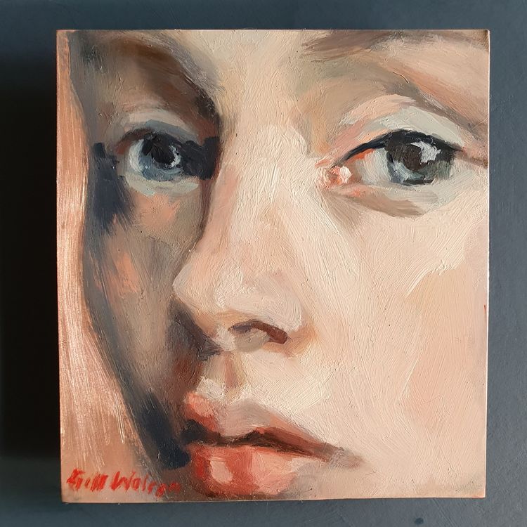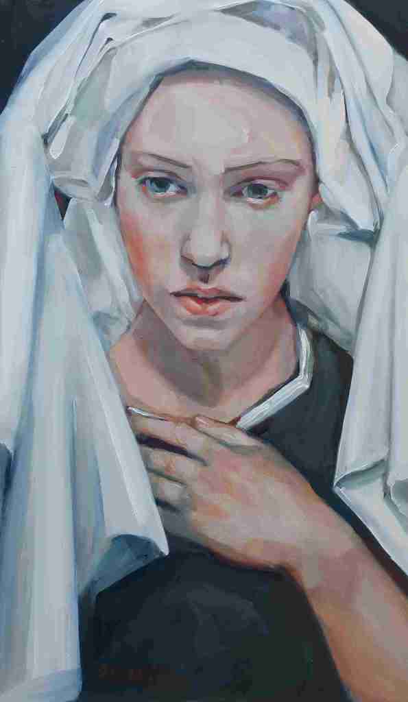 The faces are almost a blank canvas that express an emotion or a story that is vague and elusive and keeps you guessing. You can keep coming back to them and read something different every time. The turban could be a symbol of high status, of servitude or even just a towel or cloth wrapping — another thing that adds to the ambiguity and layers of meaning.