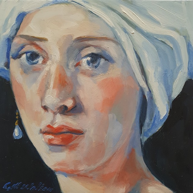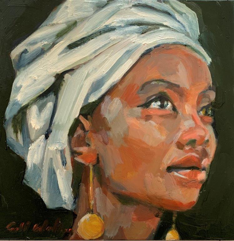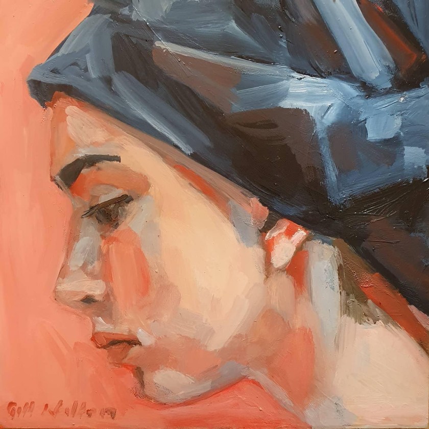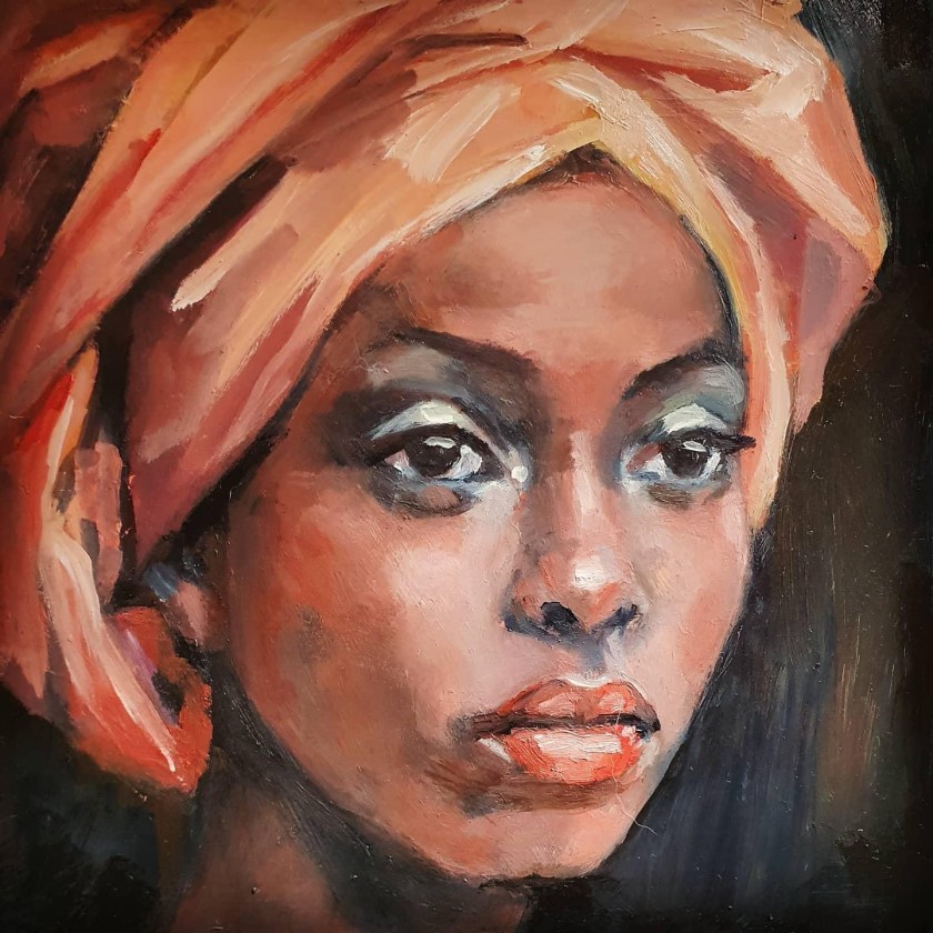 The faces are almost a blank canvas that express an emotion or a story that is vague and elusive and keeps you guessing. You can keep coming back to them and read something different every time. The turban could be a symbol of high status, of servitude or even just a towel or cloth wrapping — another thing that adds to the ambiguity and layers of meaning.