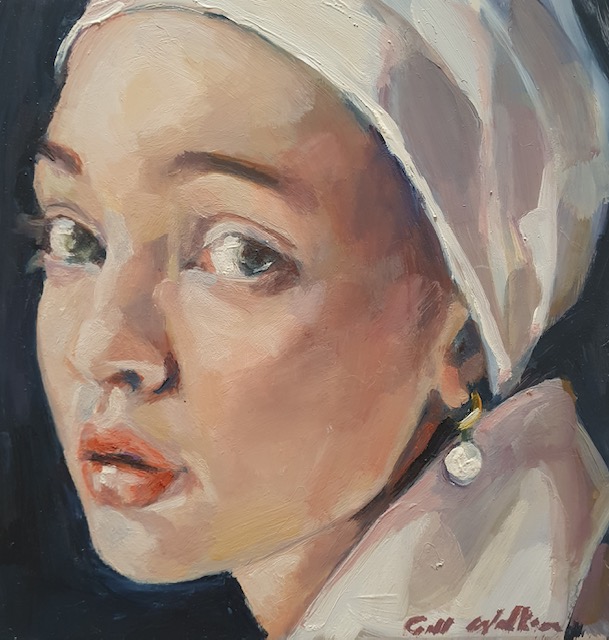 This series of tiny portraits each wears a turban. This simple device puts the wearer out of time, hairstyles can be dated but Turbans can reference painters that span the centuries, Van Eyck (1400s), Vermeer (1600s) Ingres (1800s) Sonia Boyce (now) to name but a few.